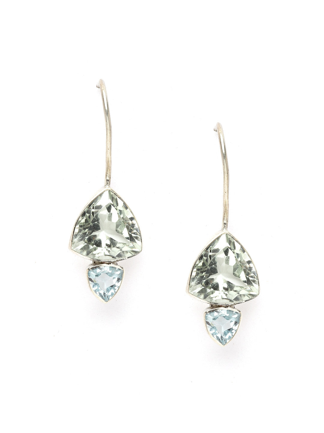 Prasiolite (green amethyst) and blue topaz earrings set in sterling silver.