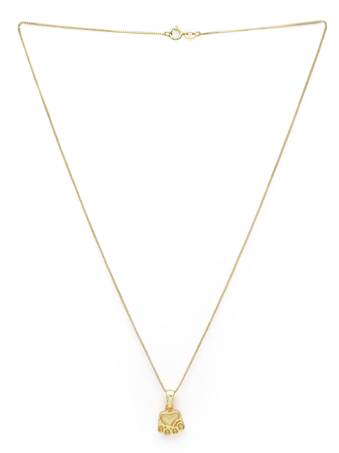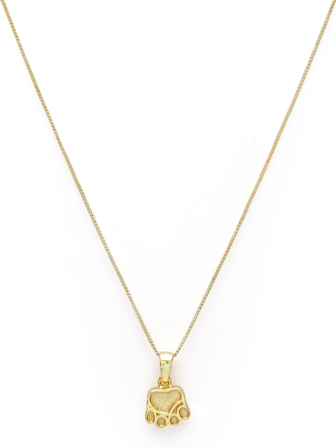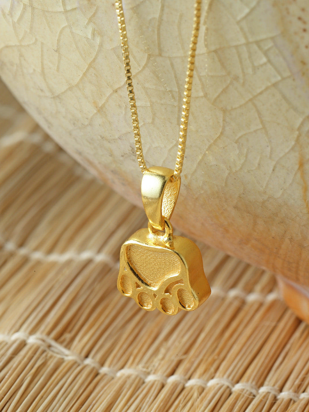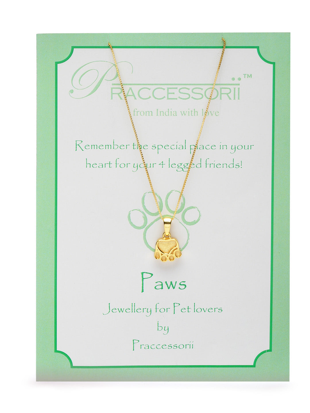 This elegant pendant, crafted from silver and plated in lustrous gold, is designed in the shape of a delicate paw print, symbolising the deep bond between pets and their owners. The pendant’s fine detailing captures the gentle curves and pads of a pet’s paw, making it a perfect token of love and affection. Strung on a matching gold-plated silver chain, this piece of jewellery is both stylish and meaningful, ideal for all pet lovers who want to keep a reminder of their furry friends close to their heart.