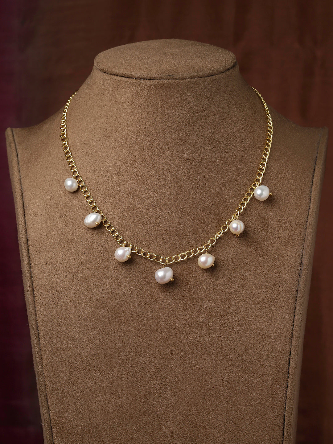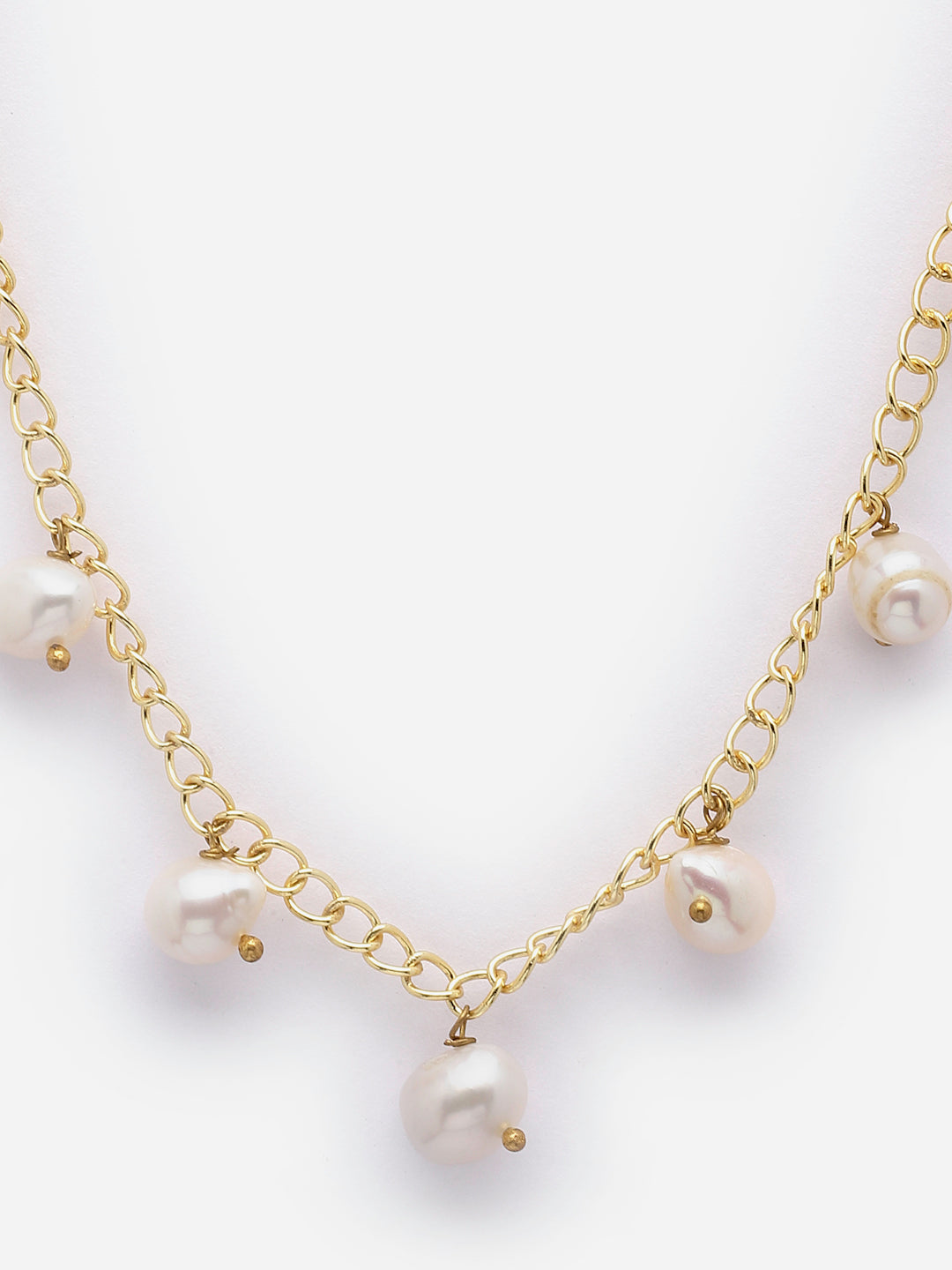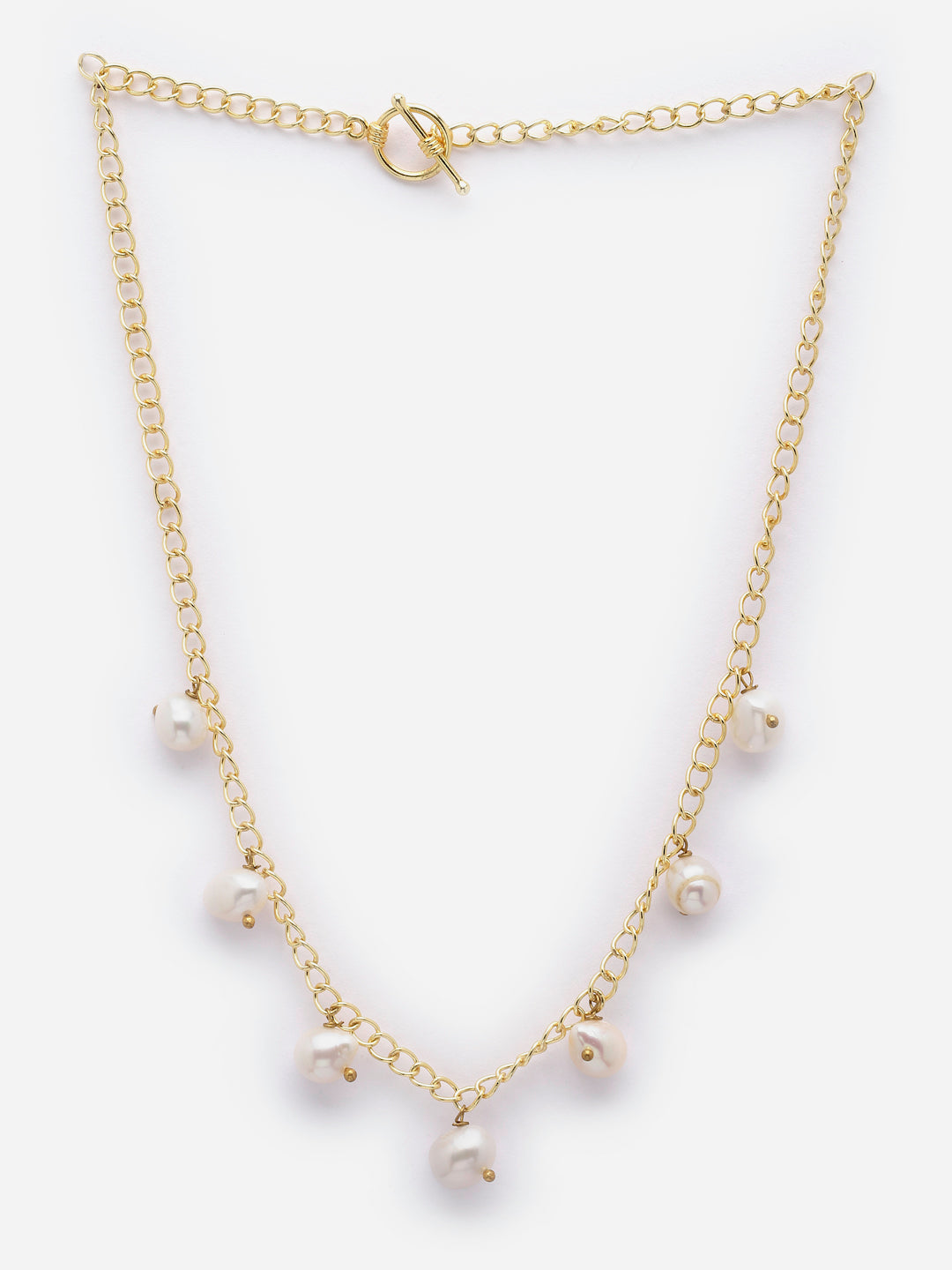 Natural pearls on a gold-plated silver chain.Silver toggle closure.