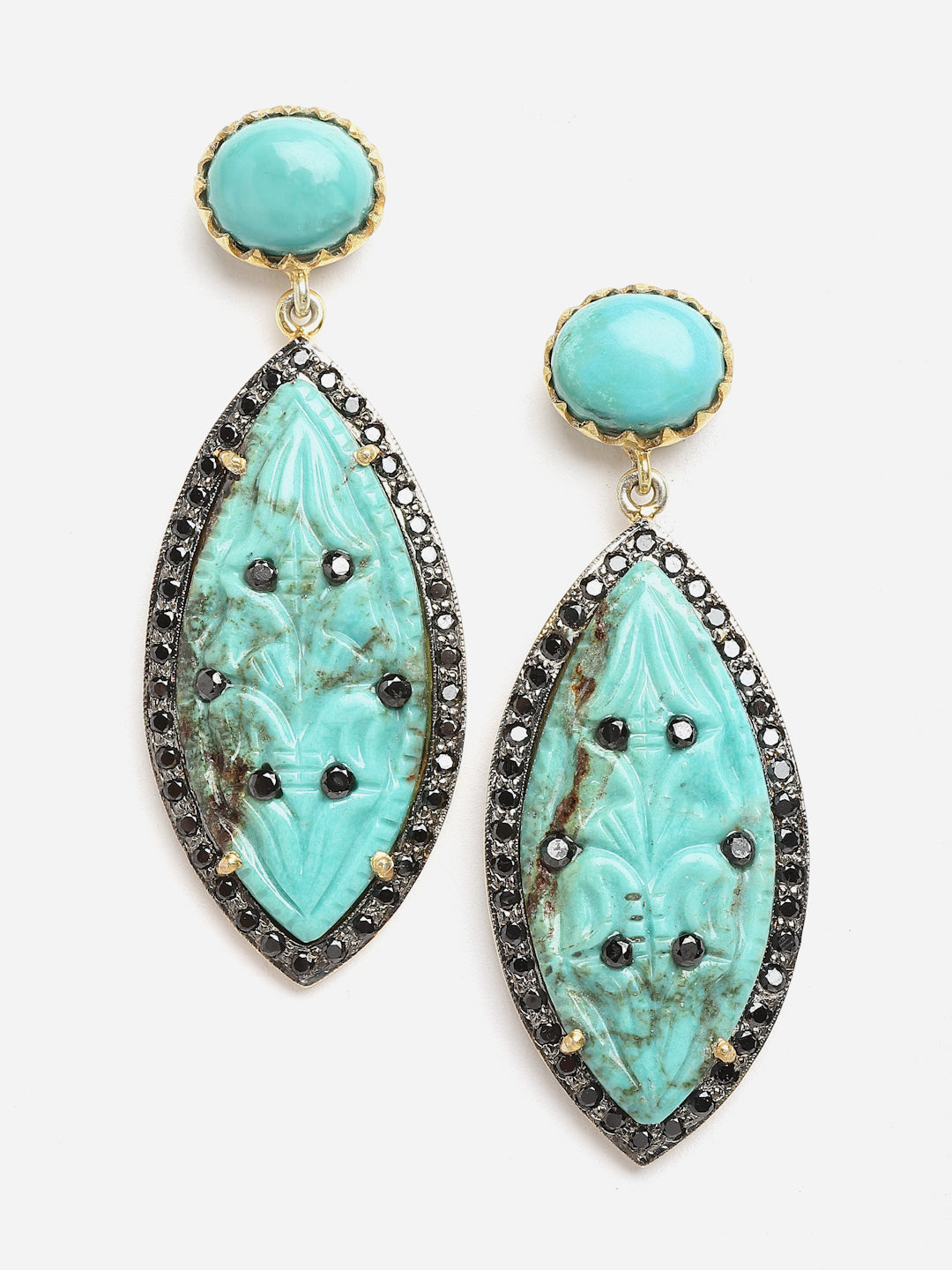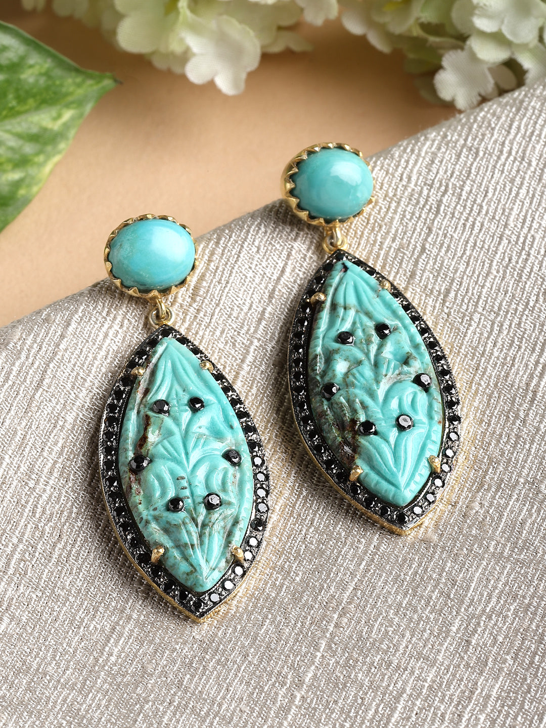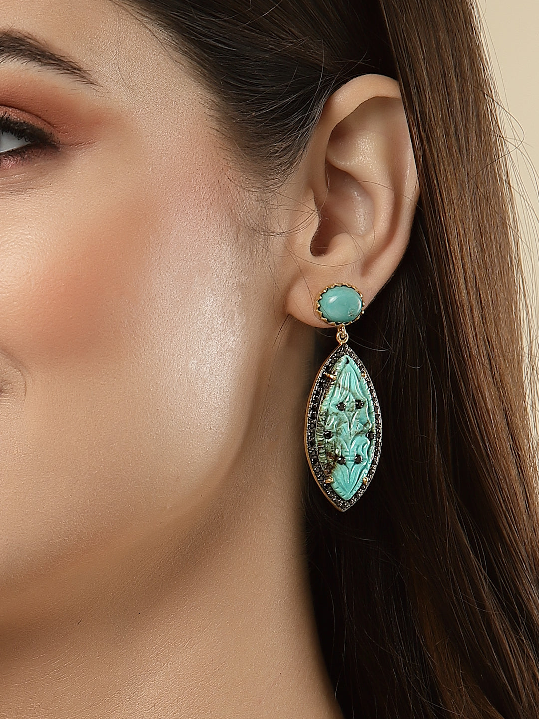 Carved turquoise paired with cubic zirconia set in gold-plated silver