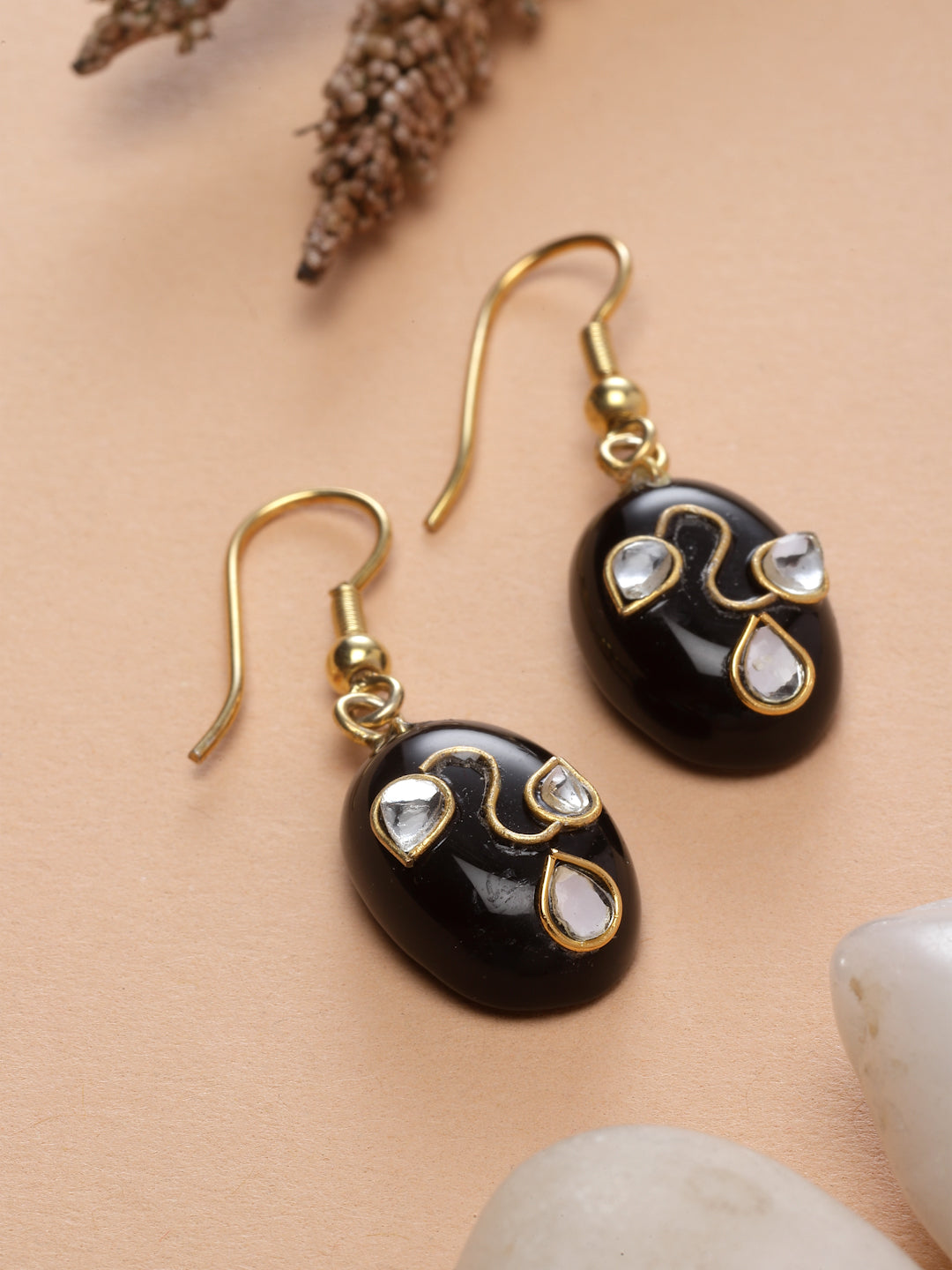 Silver kundan work on oval black onyx.