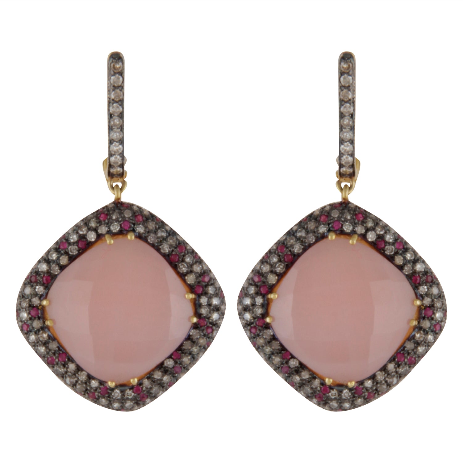 Ear drops with pave set single cut diamond surrounds.Set in gold plated sterling silver.
