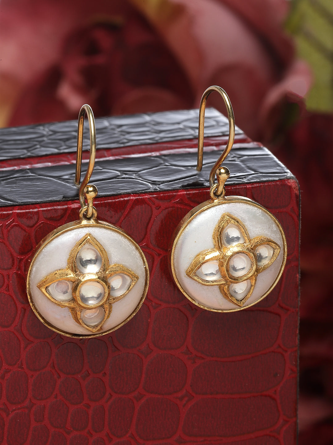 Pretty silver kundan work on natural coin pearl.Gold plated silver.