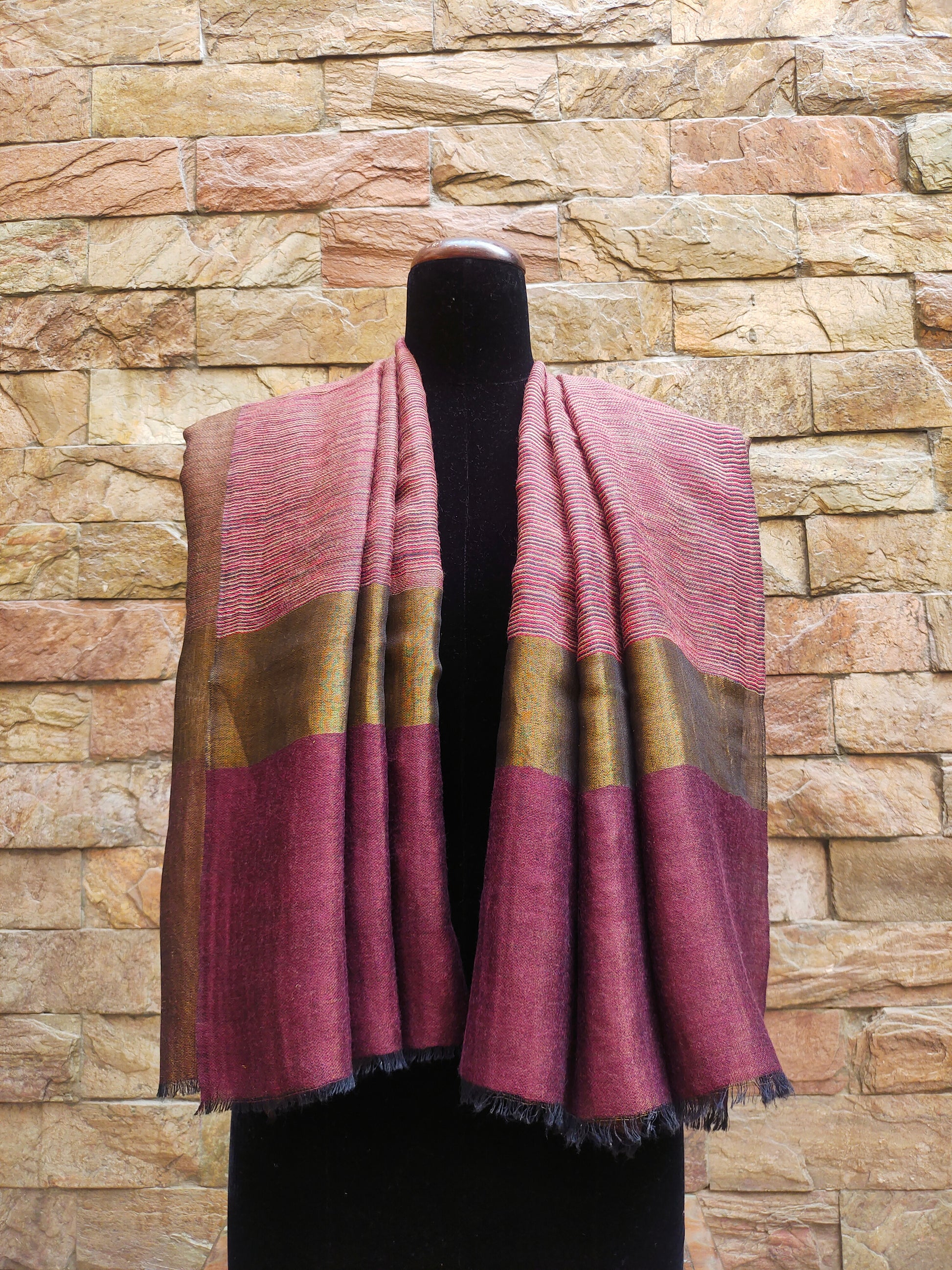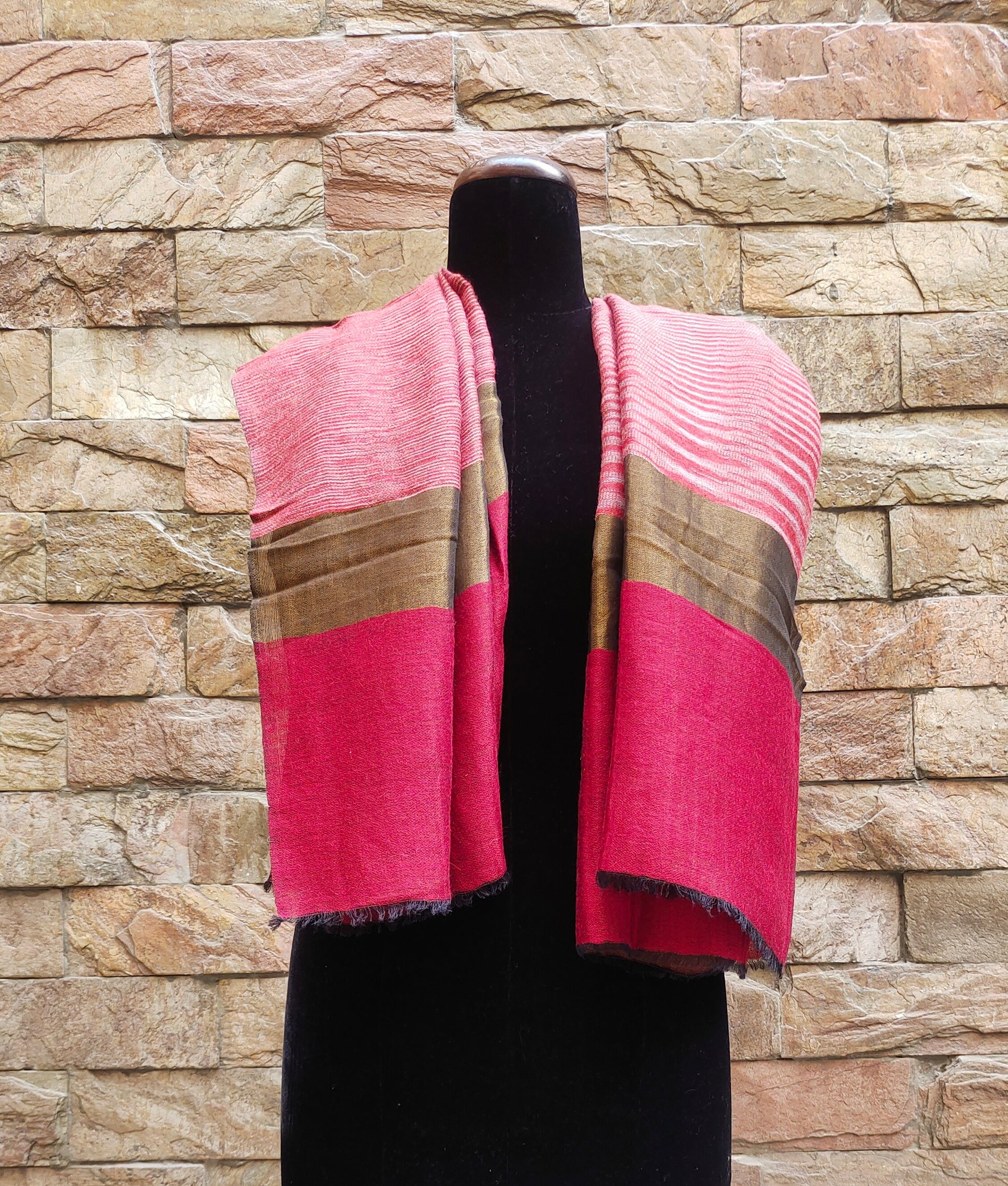 beautifully crafted textile accessory that showcases intricate weaving and fine craftsmanship. "Ekat" (likely referring to Ikat) is a traditional dyeing technique where threads are resist-dyed before weaving, creating unique, blurred patterns. "Jaal" refers to an elaborate, net-like or lattice pattern, often seen in Indian textiles and embroidery.