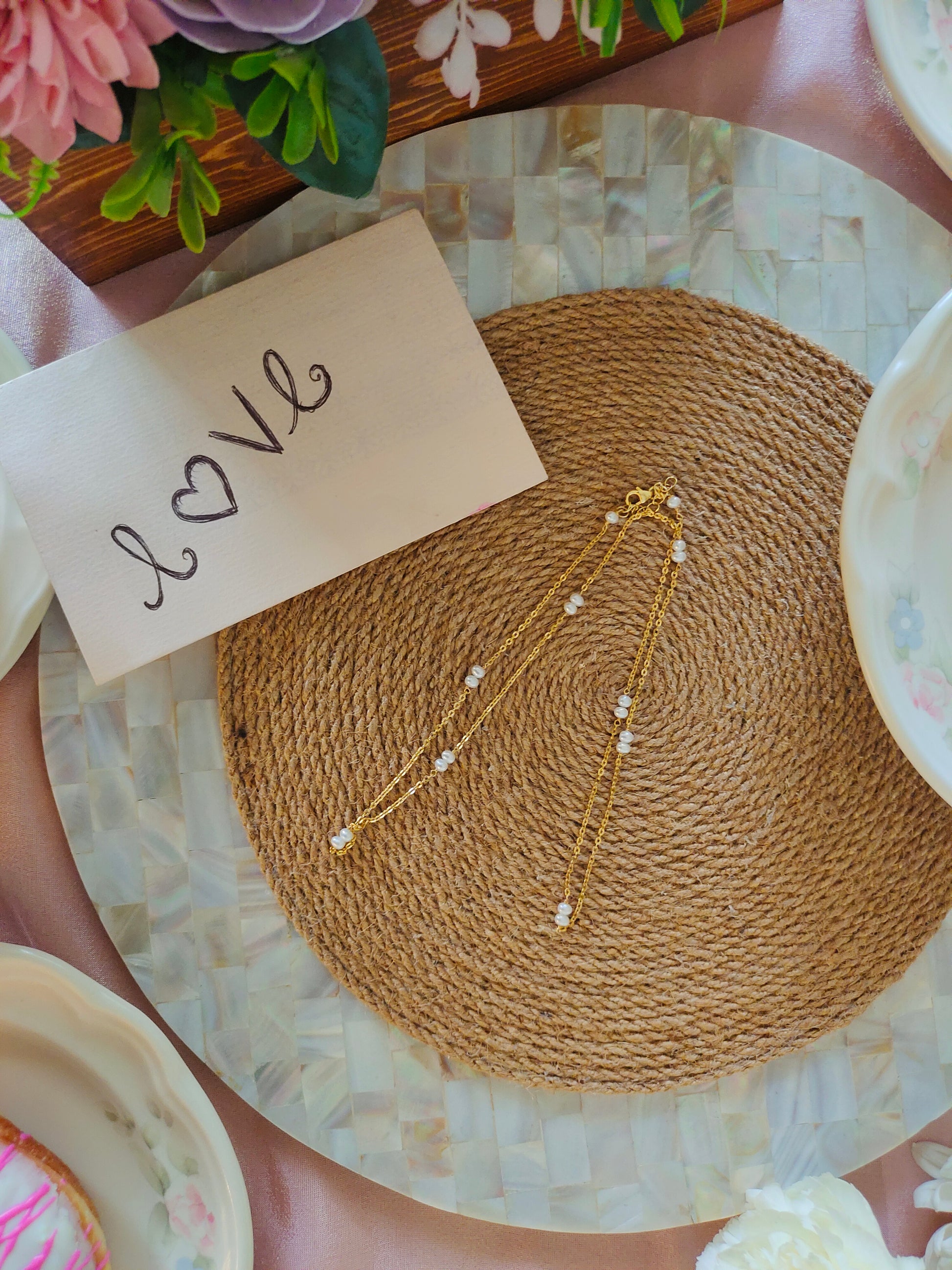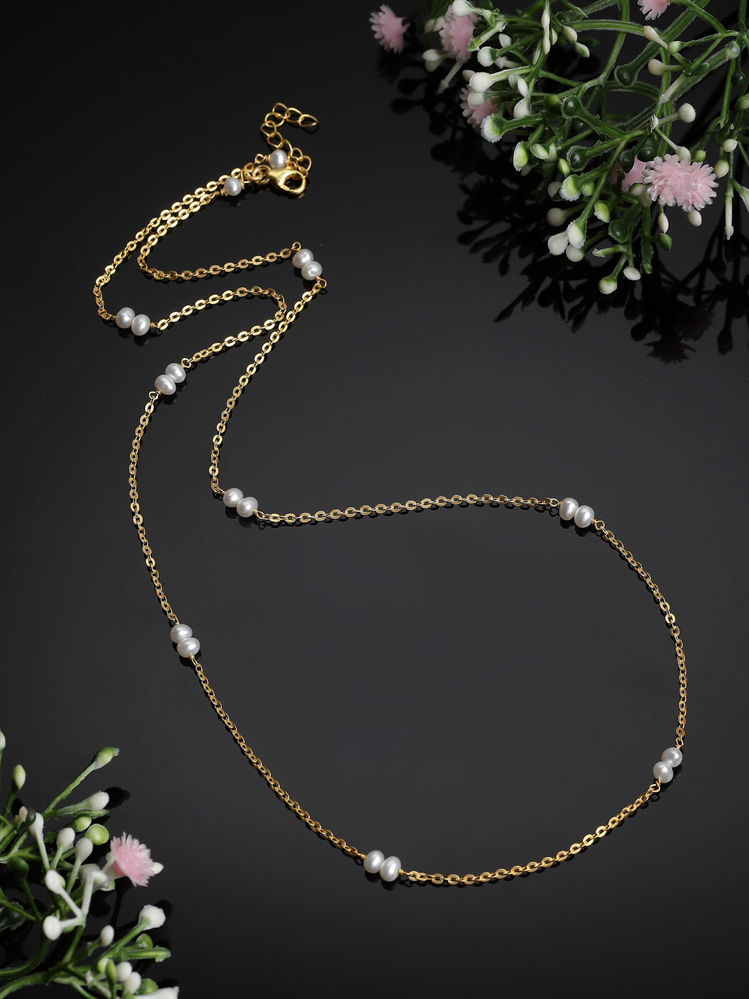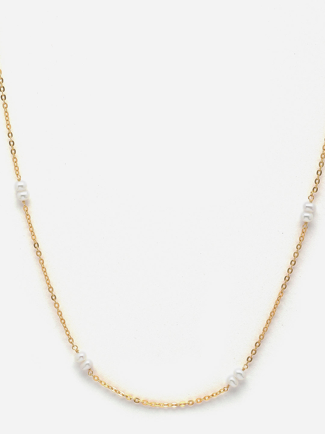Natural pearls on a gold-plated silver chain.Silver toggle closure.