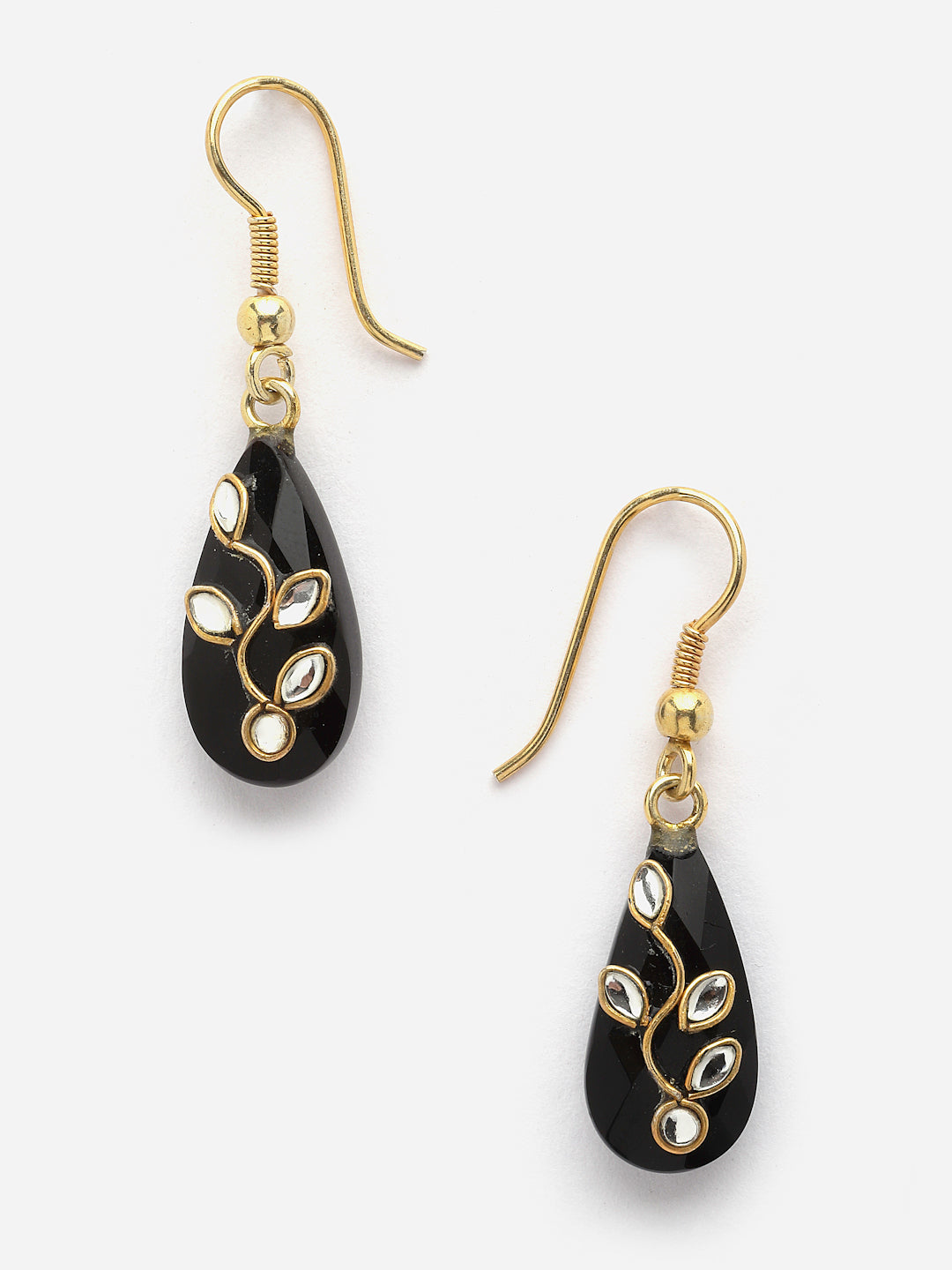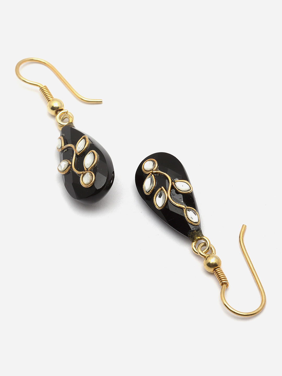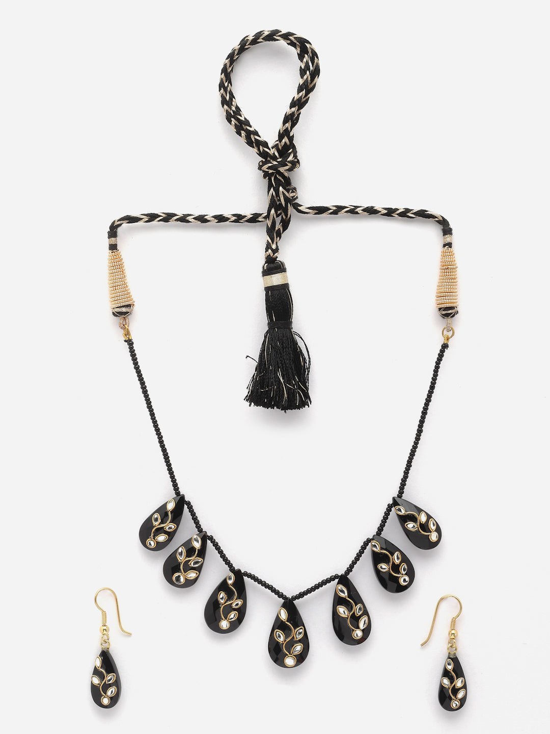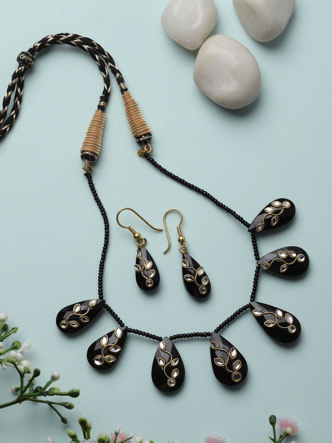 Silver kundan work on black onyx, strung on onyx beads.Co-ordinating earrings.