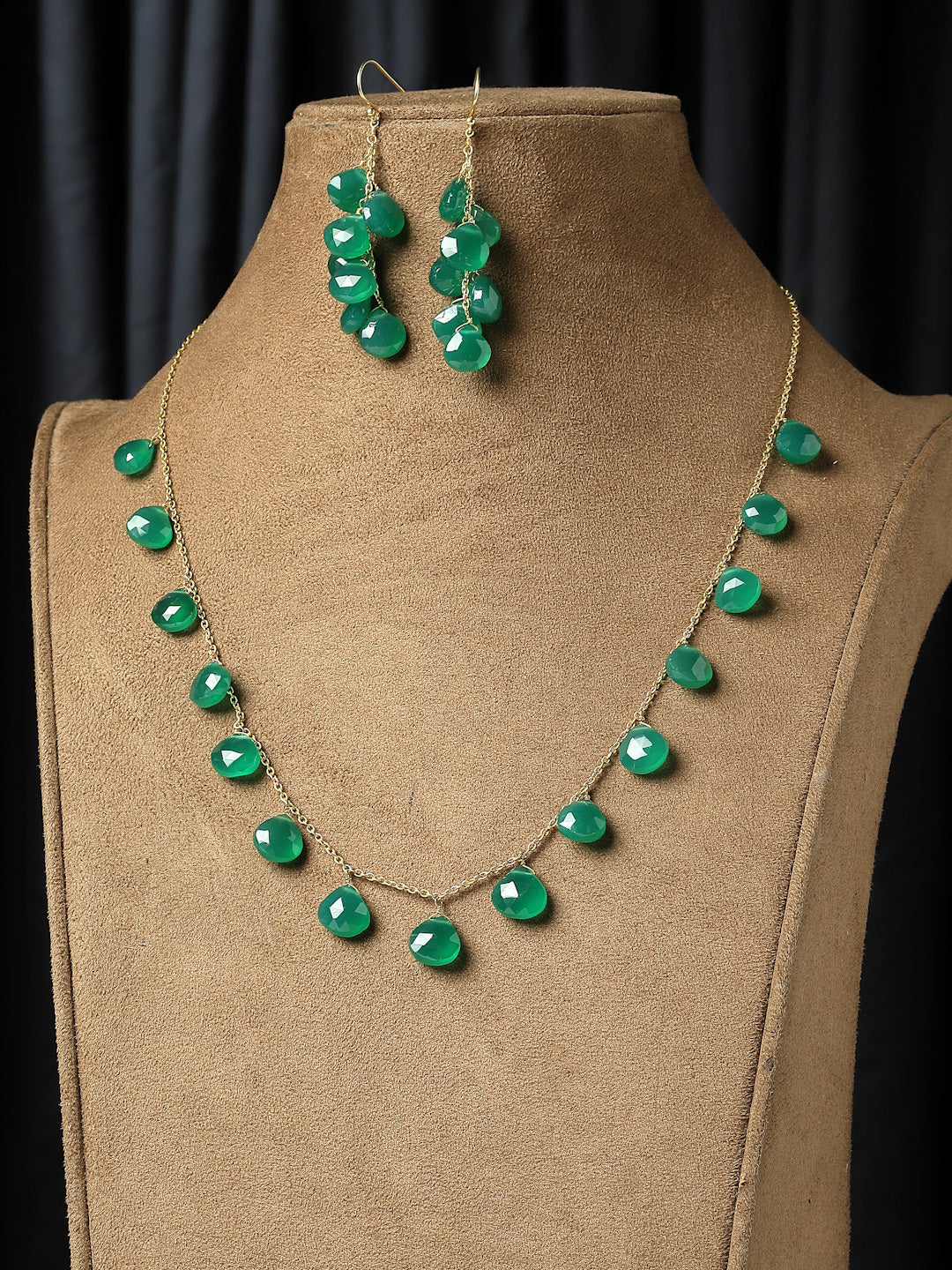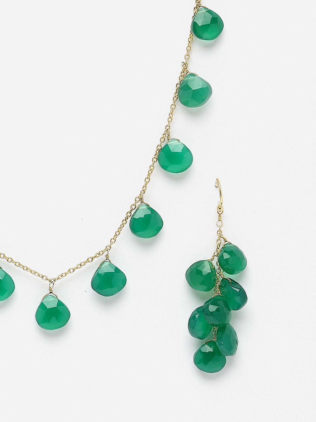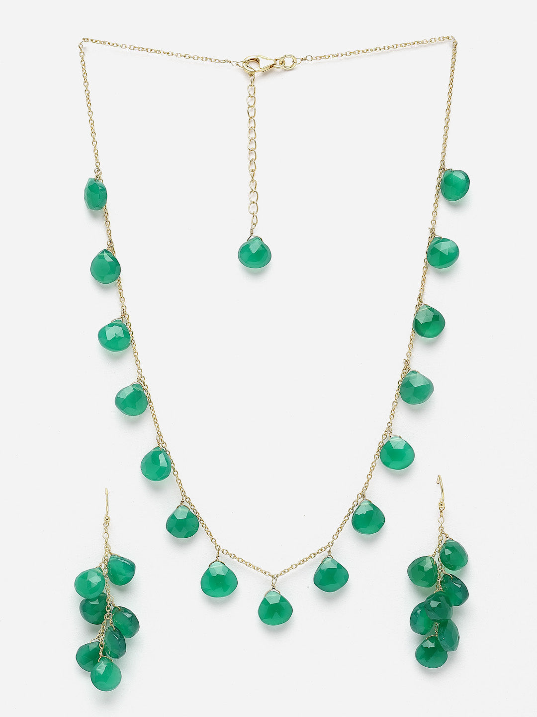 Delicately strung peridot briolettes on a gold plated silver chain.