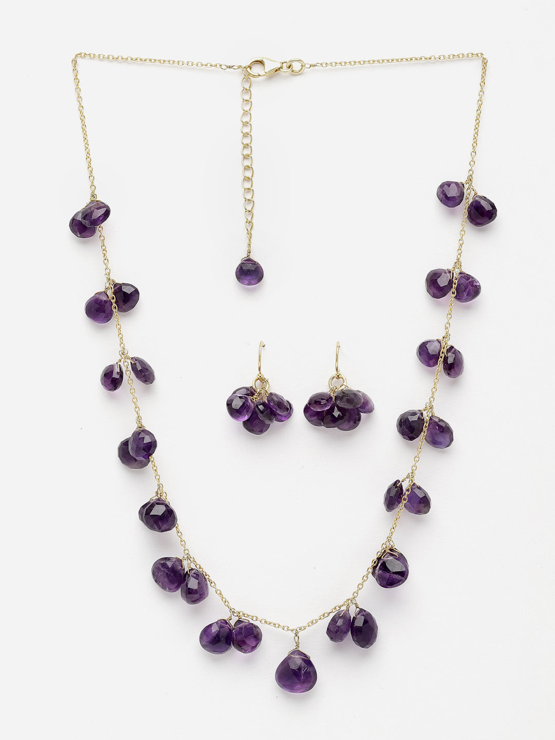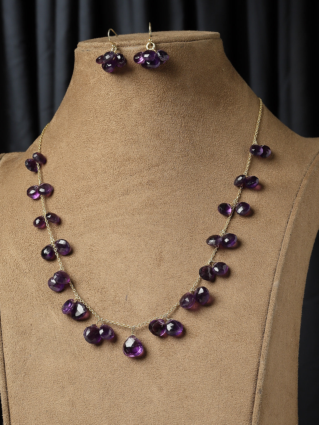 Delicately strung peridot briolettes on a gold plated silver chain.