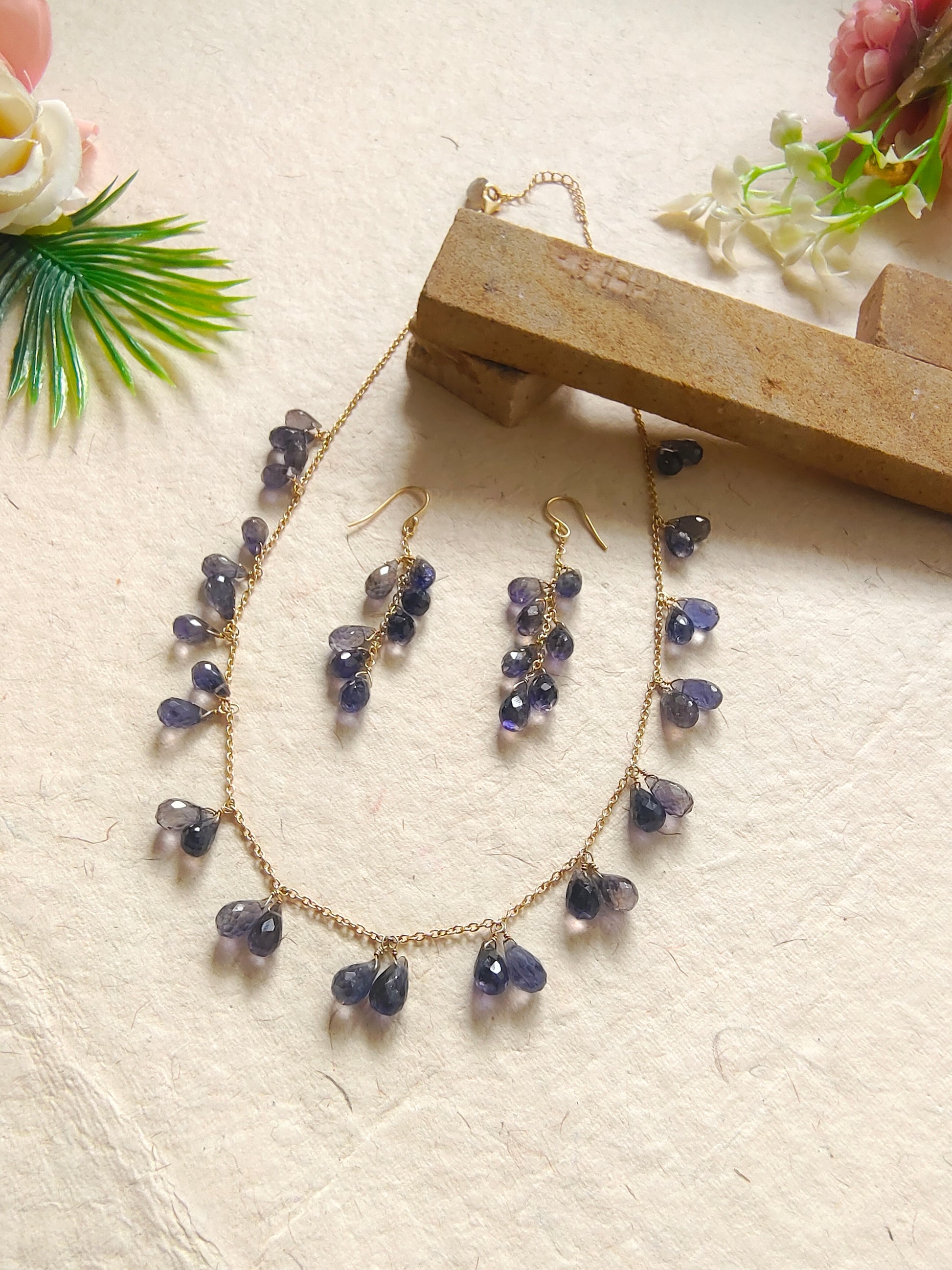 Delicately strung peridot briolettes on a gold plated silver chain.
