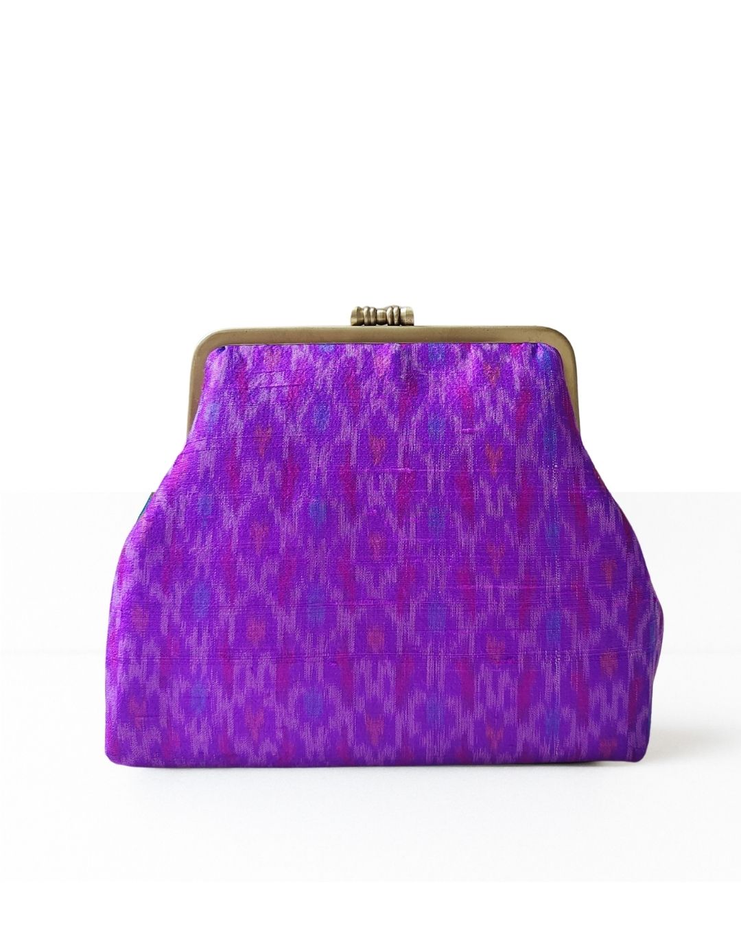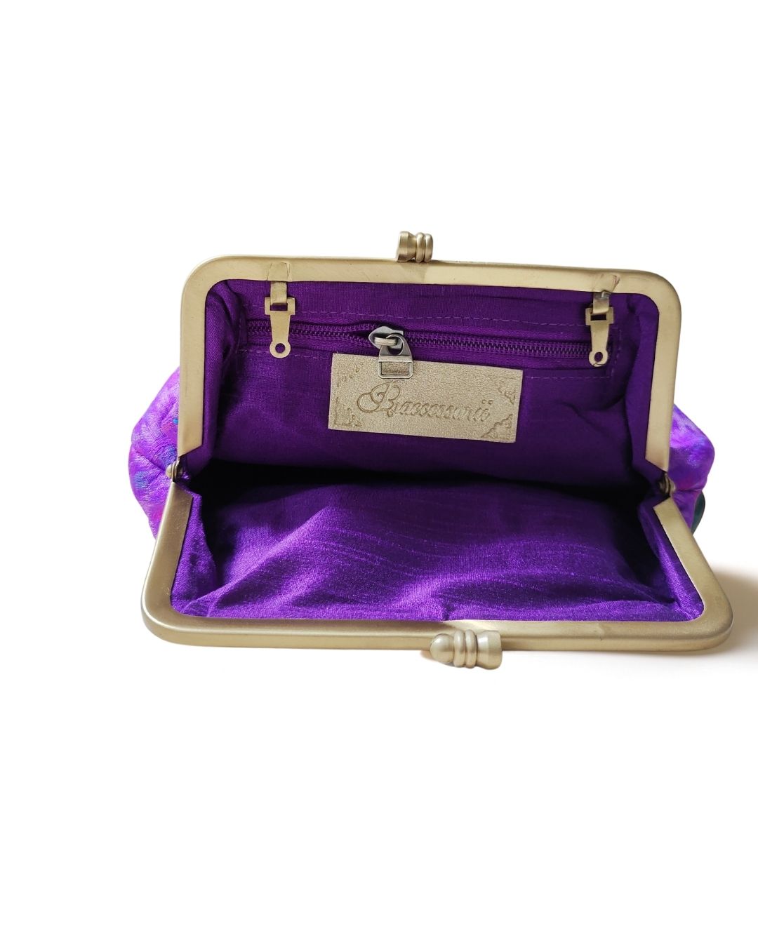 Celebrate heritage craftsmanship with this handcrafted clutch, adorned with classic Ajrakh-inspired paisley motifs in rich black and terracotta tones. The bold, earthy red backdrop enhances its traditional appeal, while the antique gold kiss-lock frame adds an old-world charm. Compact yet striking, it’s perfect for cultural festivities, intimate weddings, or as a statement accessory with fusion wear.