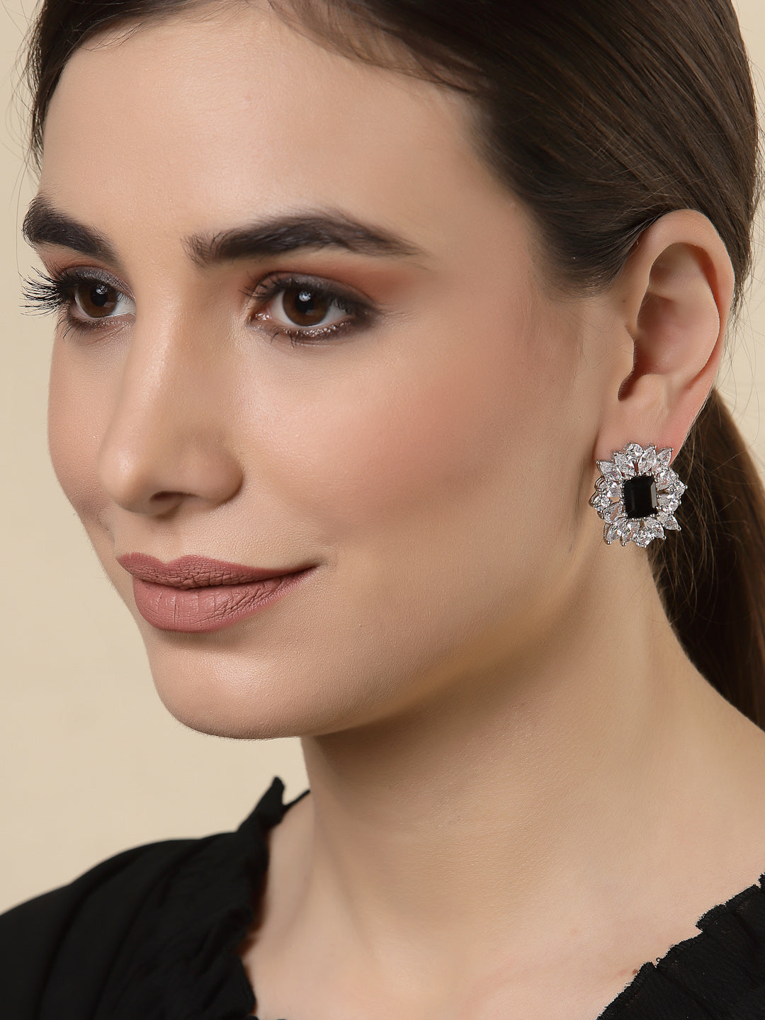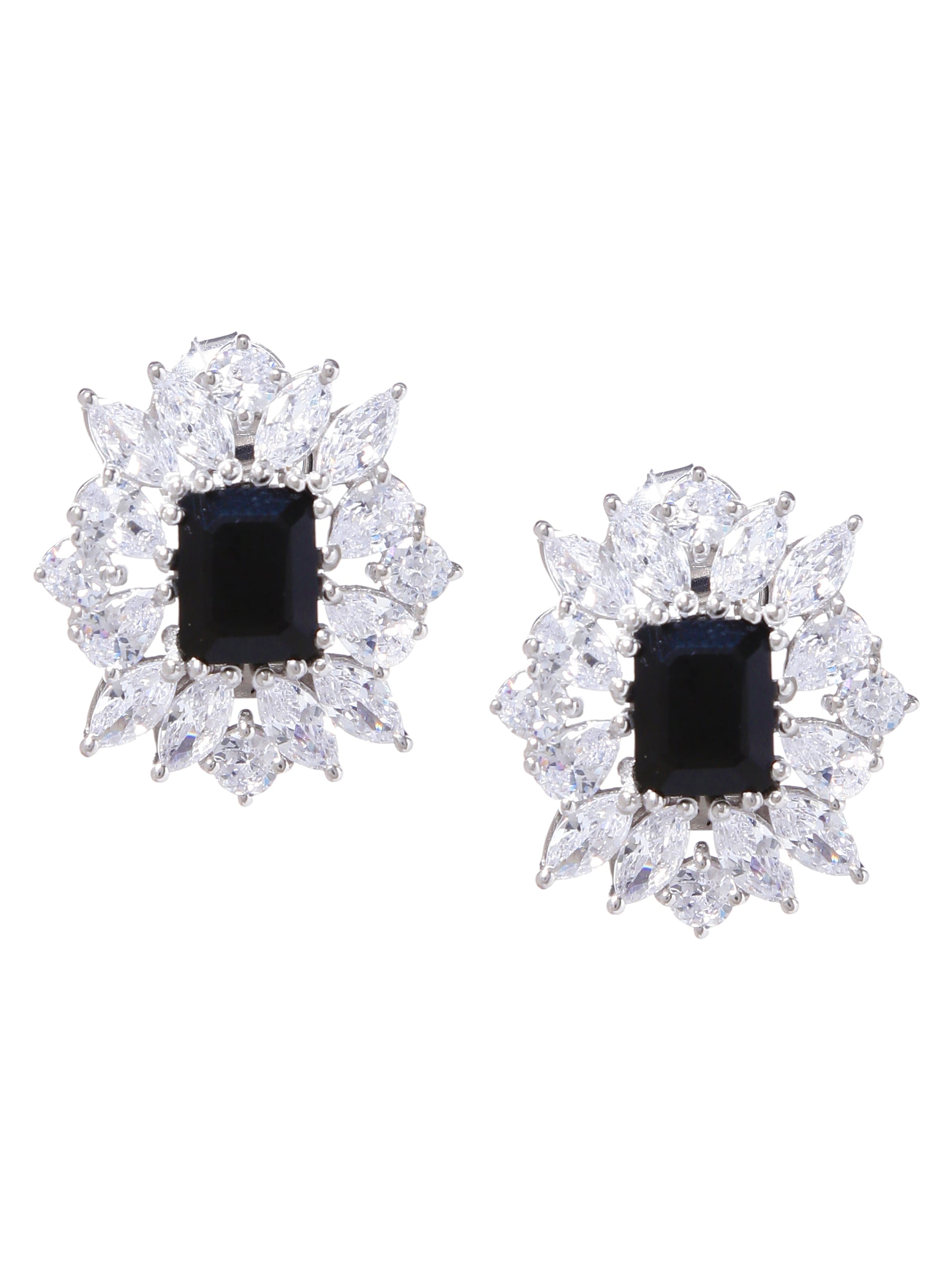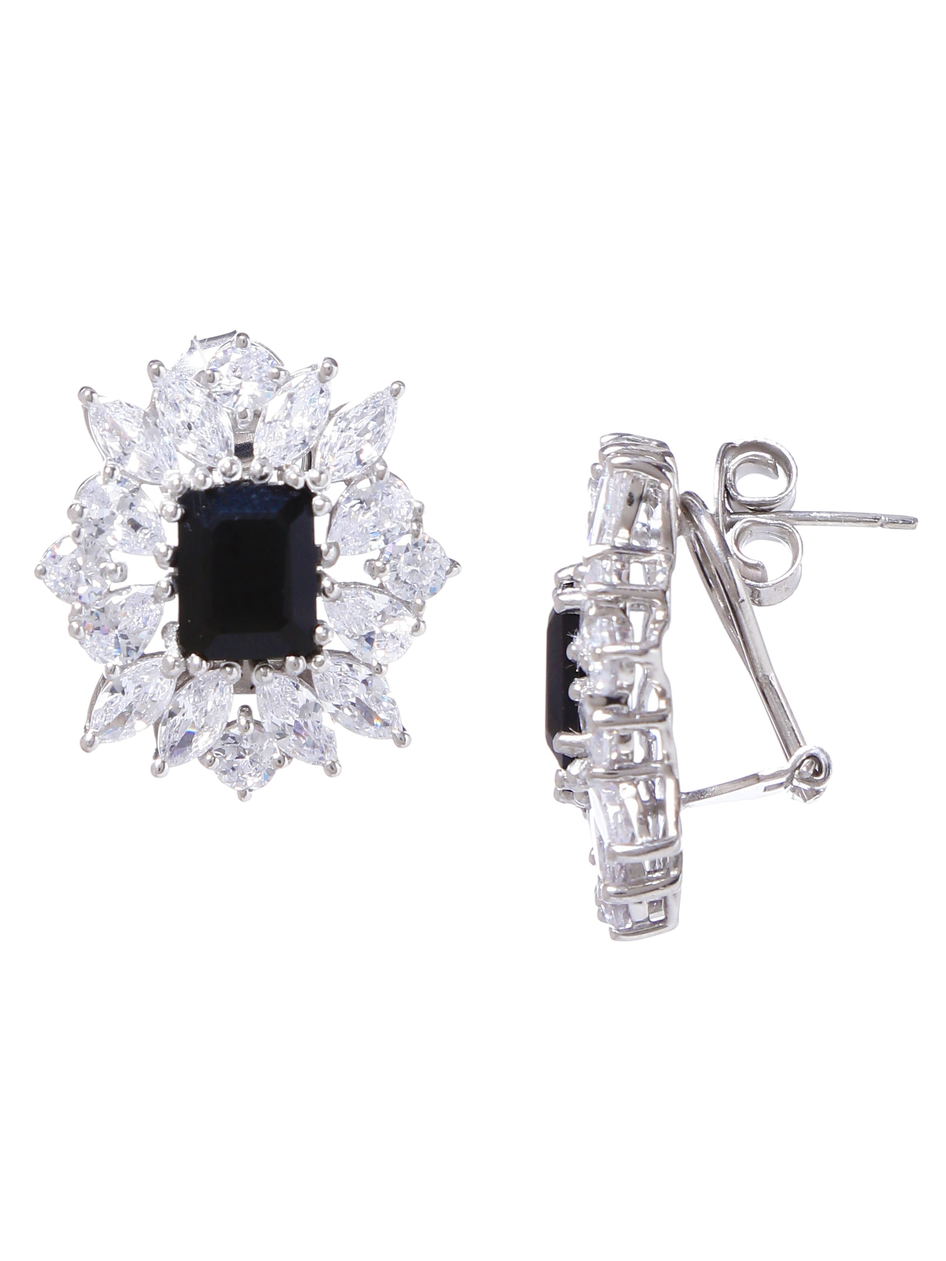 Black colour centre surrounded by marquise and round shaped white cubic zirconia ear tops with French clip closure.
