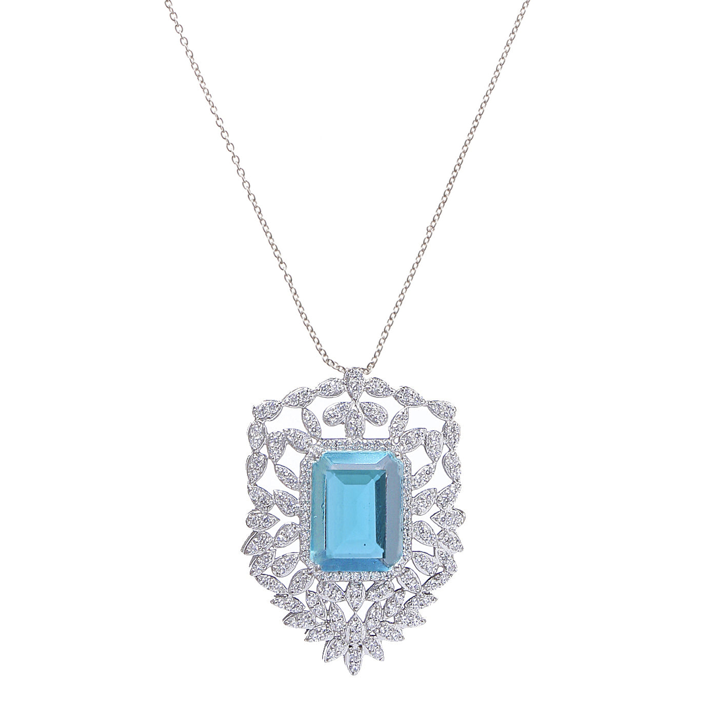 Sterling silver and cubic zirconia pendant blue topaz color.