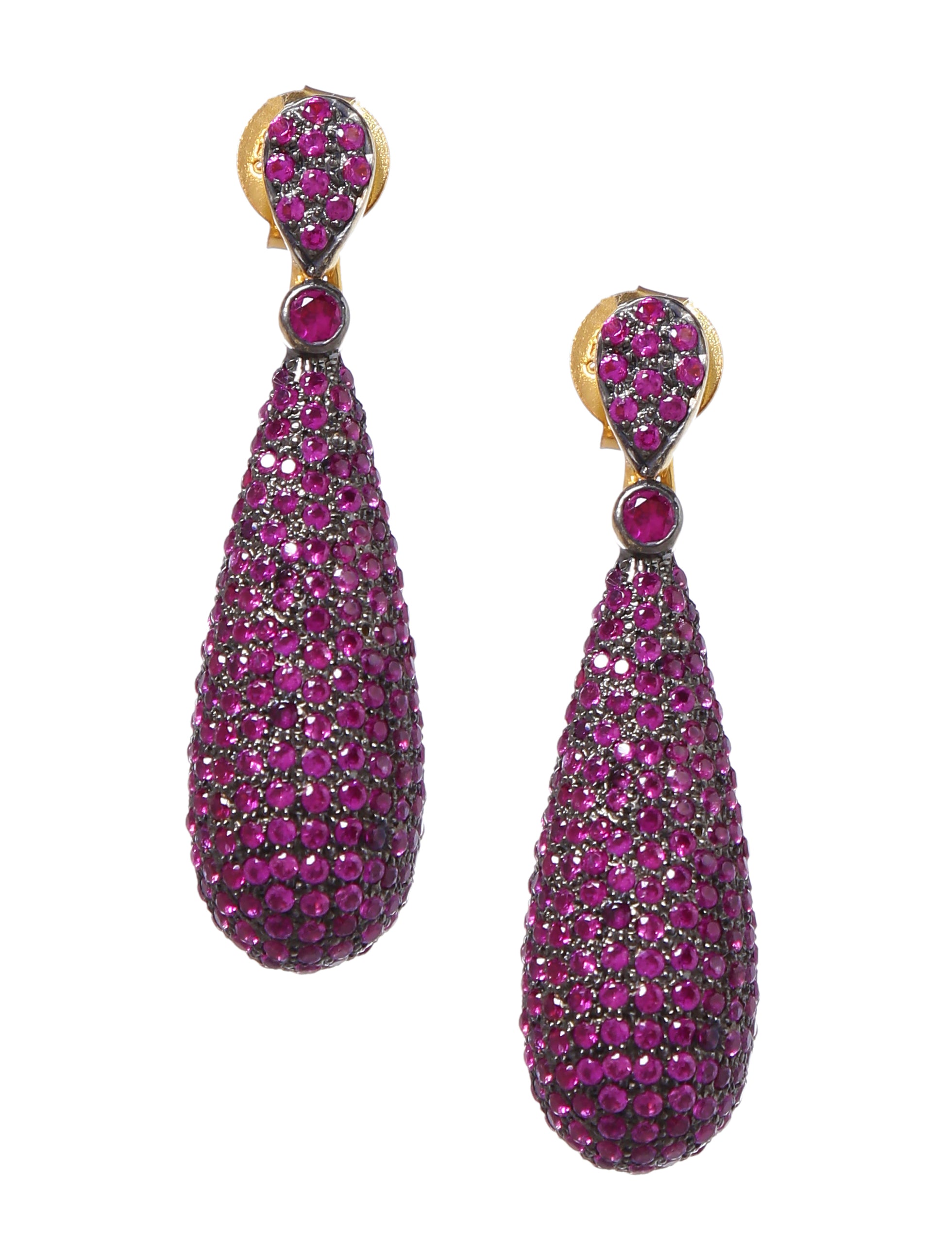 High quality cubic zirconia red drop earrings set in sterling silver and 18k gold plated. push back closure