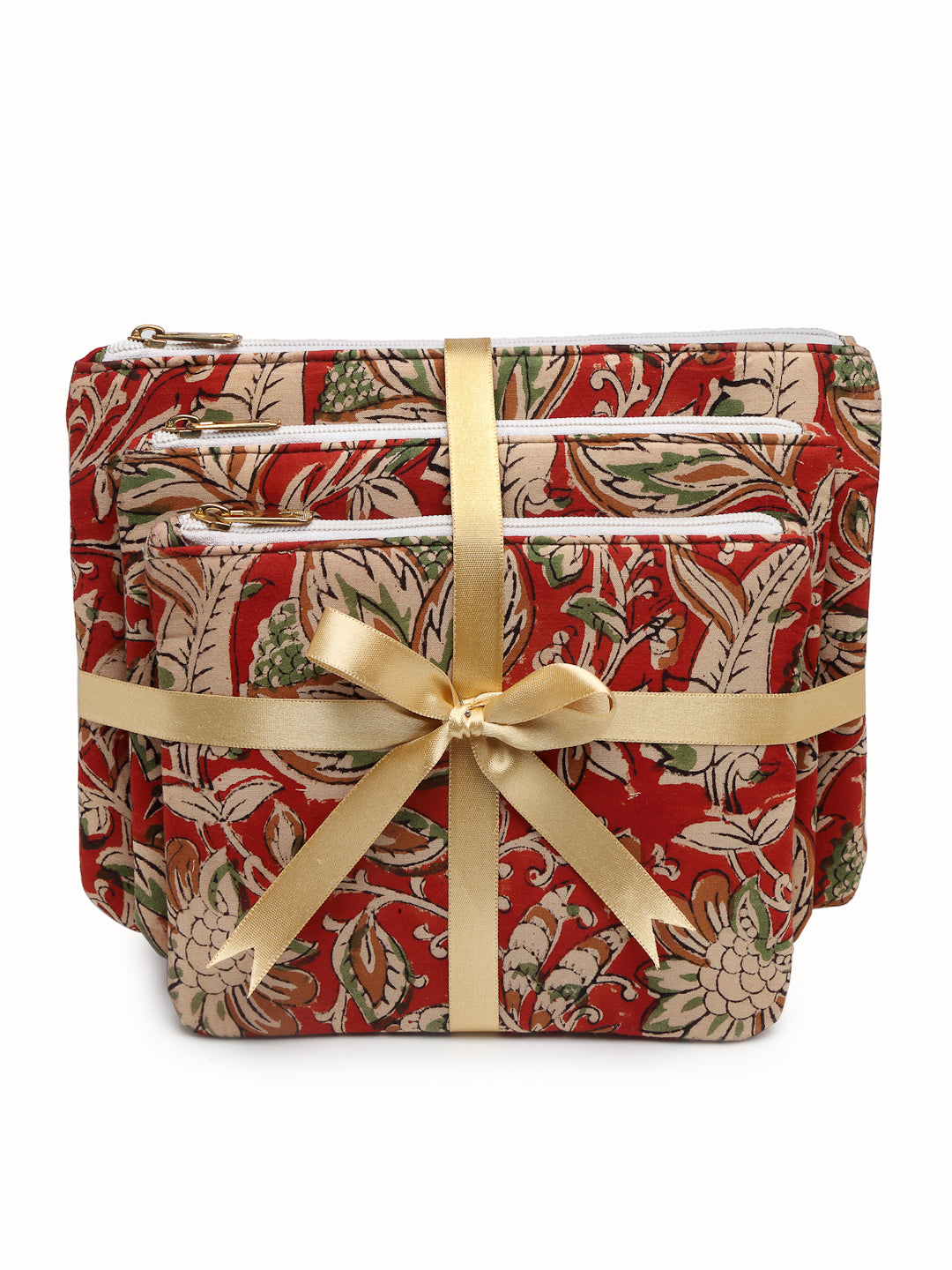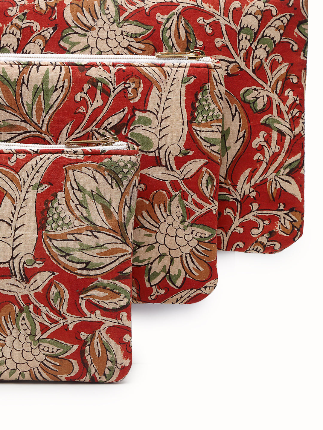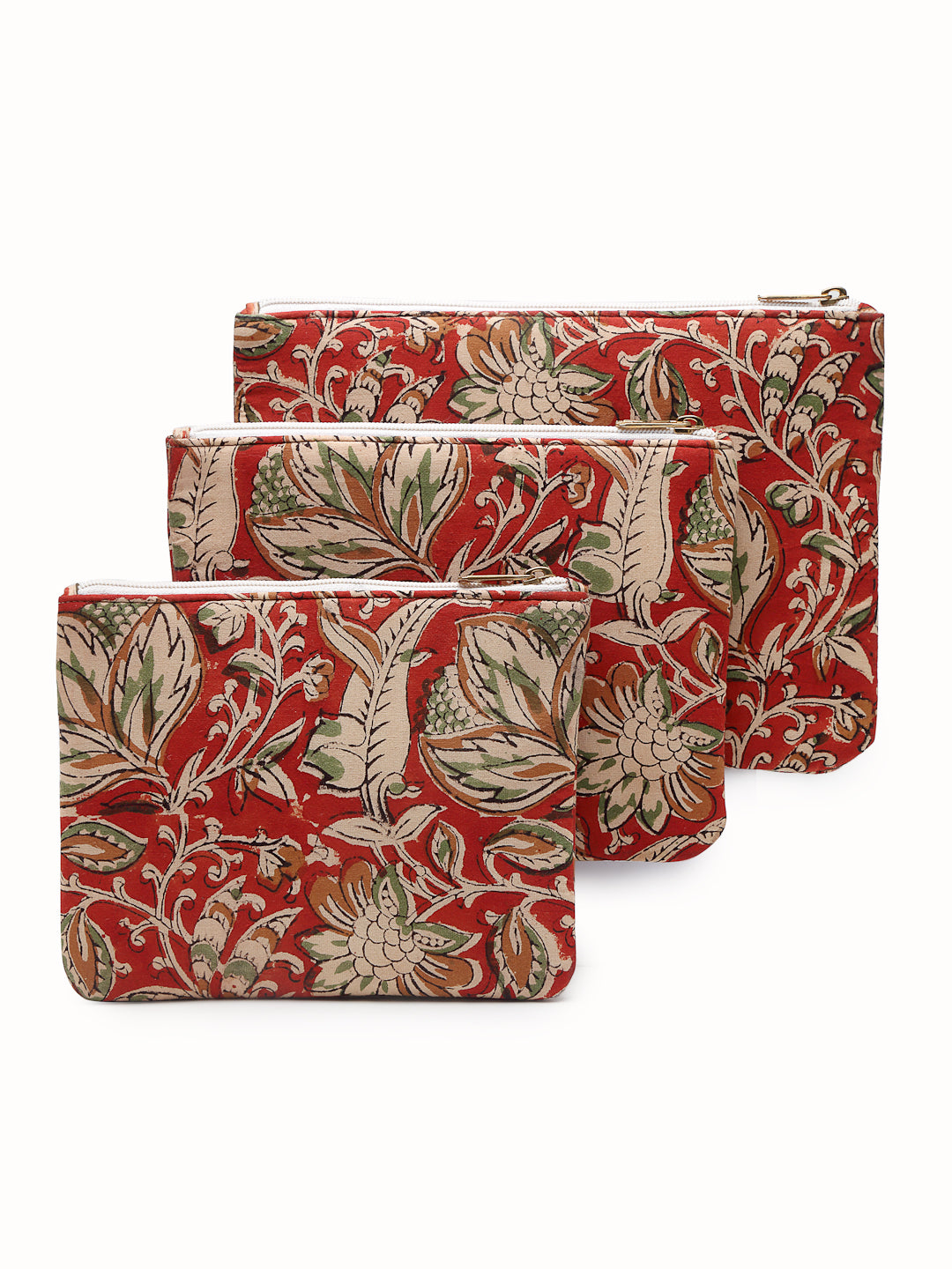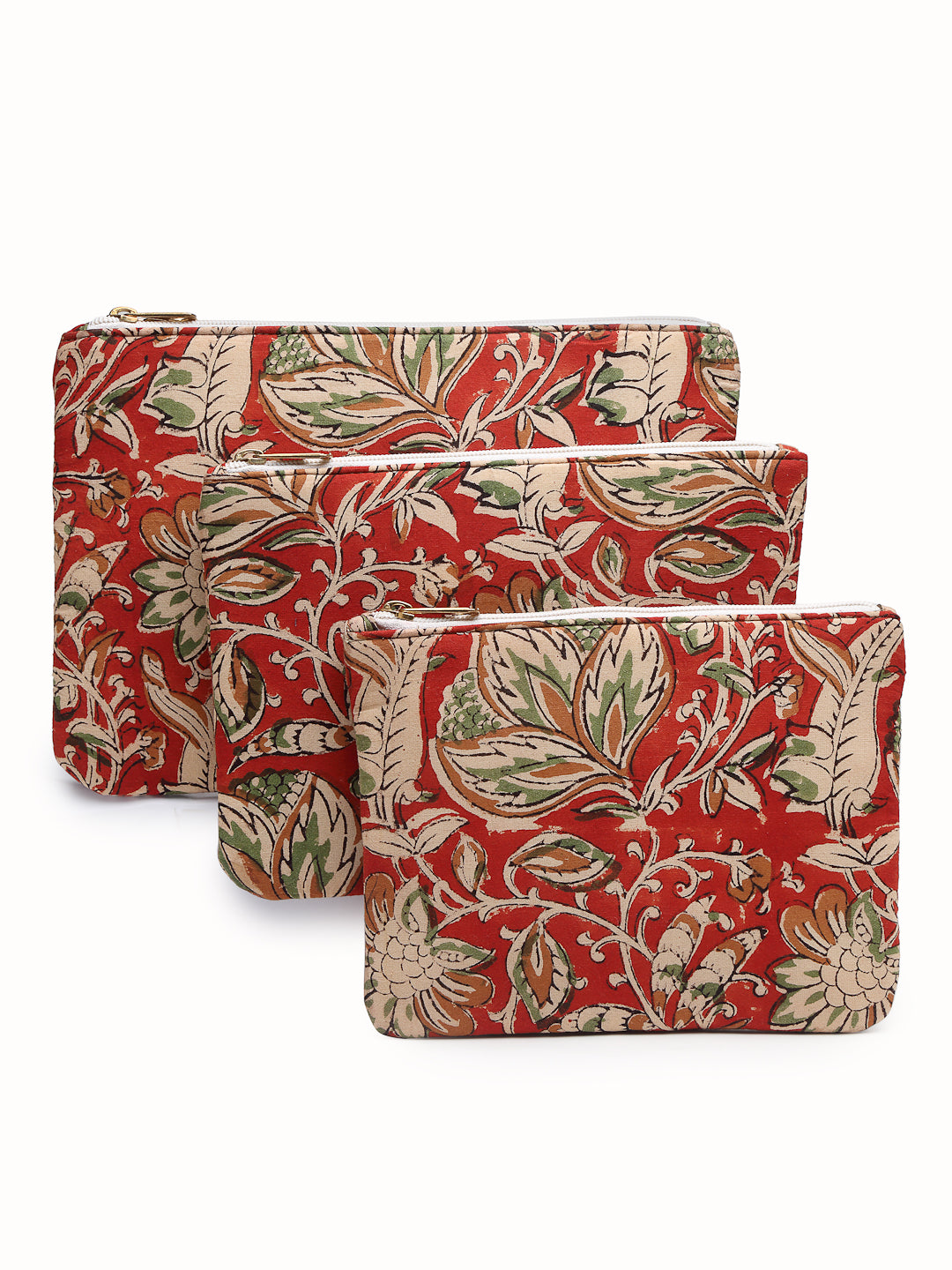 Pure cotton block print zippered travel pouches.Waterproof lining.