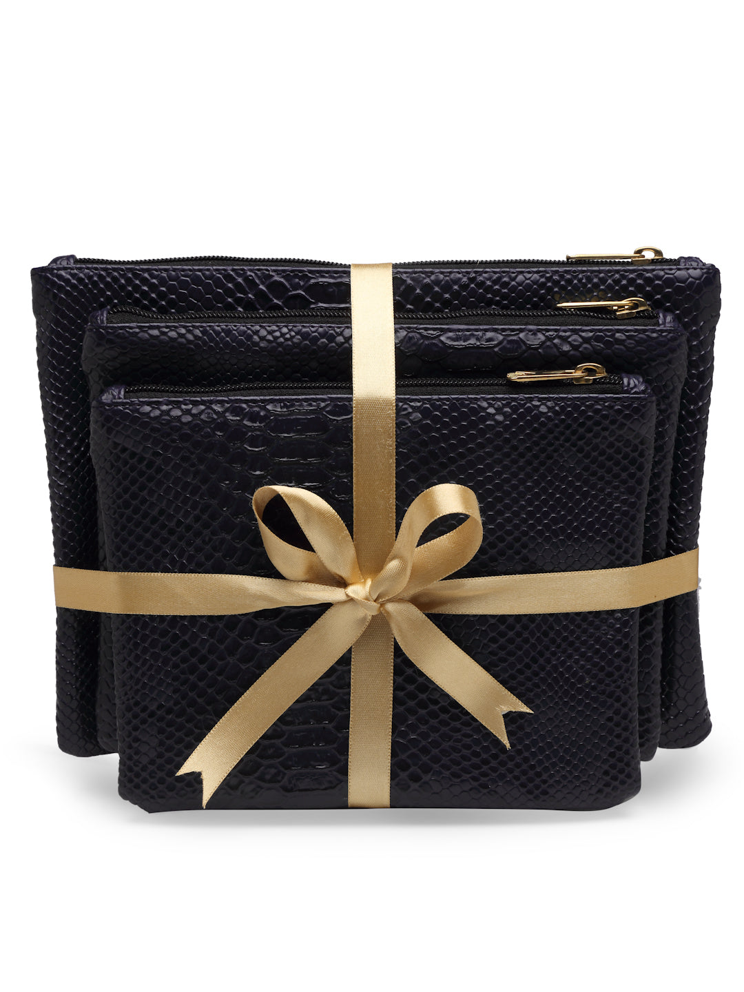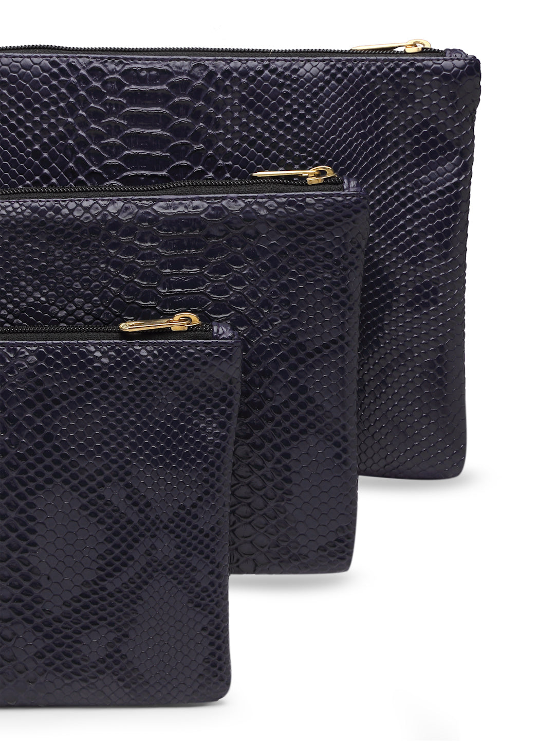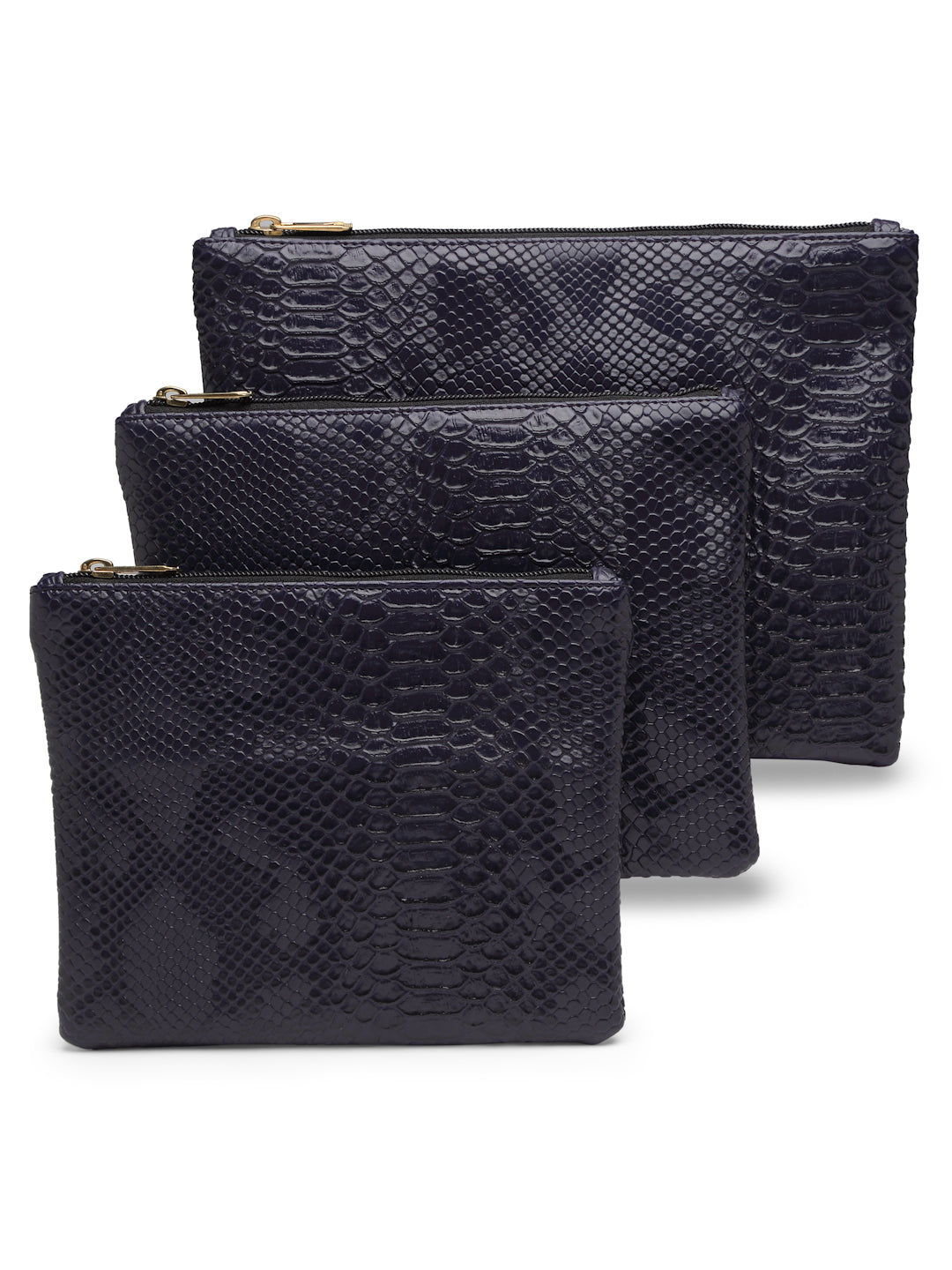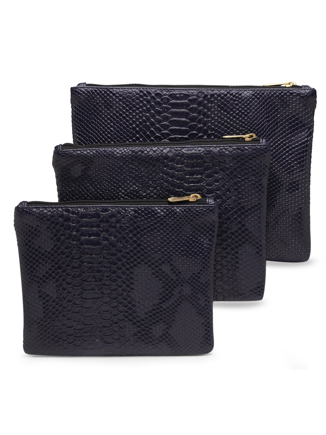 Navy blue snakeskin pattern zippered travel pouch.Waterproof lining.
